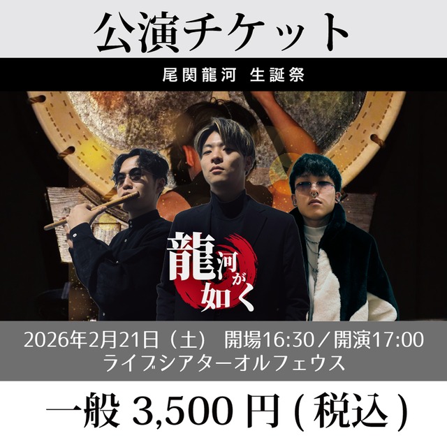 【日時】2026年2⽉21⽇(土) 開場16:30 開演17:00(18:30終演予定) 【会場】ライブシアターオルフェウス 【HP】https://orpheusrecords.jp/live/access/index.html 【住所】〒133-0057 東京都江戸川区西小岩1-27-16 オルフェウスビル2F 【アクセス】JR総武線小岩駅北口階段を降り、イトーヨーカドーの左の道を直進し、吉野家、セブンイレブンのある交差点蔵前橋通りを右に直線。 次の信号手前の1Fが佐川急便のビルの2Fです。 【料金】 ・前売り券 3,500円(税込) ※別途送料がかかります。 ※入場時に別途ドリンク代600円かかります。 【チケット情報】 ■ 和太鼓グループ彩 -sai- 事務局 ・2025年11月29日(土)10:00~ WEB販売開始 WEB SHOP:http://webshop.wadaiko-sai.com/ ・2025年11月30日(日)10:00~ 電話販売開始 TEL 03-6240-7196 【主催】 和太鼓グループ彩 -sai- 【出演】 演出:尾関⿓河 出演:尾関⿓河・原琉⽣加・瀬能温⼈ 【お問い合わせ先】 和太鼓グループ彩 -sai- 事務局 TEL:03-6240-7196 【備考】 ※チケットに記載されている整理番号順の入場となります。 ※開場時間を過ぎますと整理番号は無効となります。 ※会場の都合上、開場30分より早くのご来場はご遠慮ください。 ※当日券は500円増しとなっております。 ※3歳以下は膝上可。4歳以上はチケットが必要となります。 ※当日の会場の様子を撮影し、公開する場合がございます。あらかじめご了承ください。